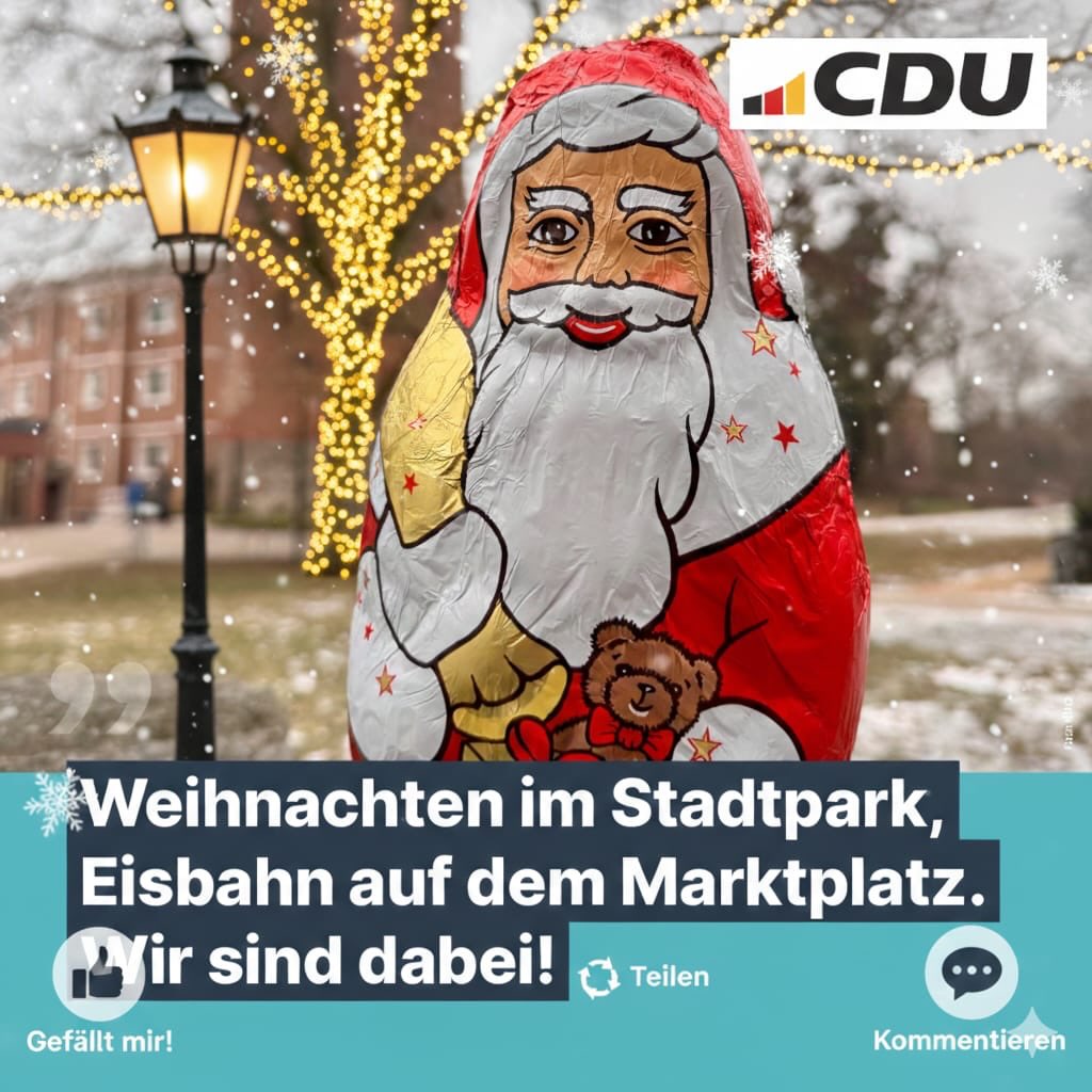 mehr🎄 Neuer Ort, gleiche Weihnachtsstimmung? Gemeinsam mit @bvb_fw_bernau und @buendnis_fuer_bernau setzt sich die CDU dafür ein, den Bernauer Weihnachtsmarkt künftig in den Stadtpark zu verlegen. ✔ weniger Einschränkungen für die Innenstadt ✔ mehr Raum und bessere Zugänglichkeit ✔ mehr Sicherheit ? bei vertrauter, weihnachtlicher Atmosphäre Die Eisbahn auf dem Marktplatz bleibt bestehen ? sie hat sich bewährt. ⛸️ So verbinden wir Bewährtes mit sinnvollen Weiterentwicklungen im Interesse der Bürgerinnen und Bürger. 💬 Was ist deine Meinung? Teile den Beitrag oder schreib uns gern einen Kommentar. 📄 Die vollständigen Hintergründe findest du auf unserer Website [Link in Bio]
